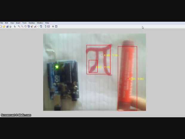 En este tutorial, le mostraremos cómo utilizar el reconocimiento de color para controlar cualquier actuador conectado a cualquier pin digital de arduino uno, hemos considerado LED como un actuador en este tutorial que está conectado al pin 13 de la ONU. En este video hemos dibujado un símbolo de Pi en color rojo que se reconised.