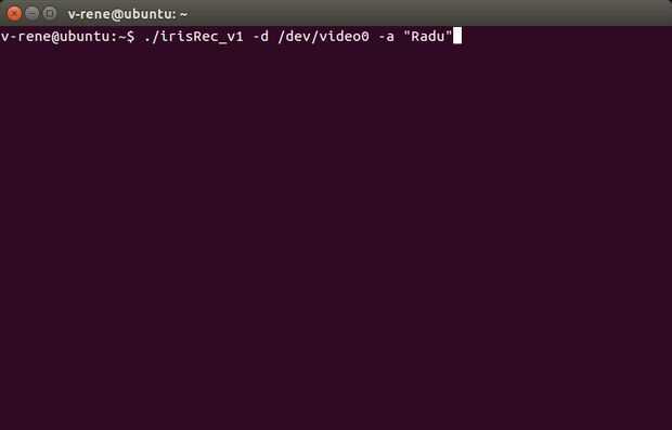 . / irisRec_v1 -d/dev/videoX , donde X es el id de la conexión camera(usually 0)