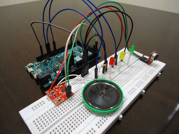 - Ondas de audio serán capturadas y amplificadas por la Junta de Sparkfun Electret Breakout ;