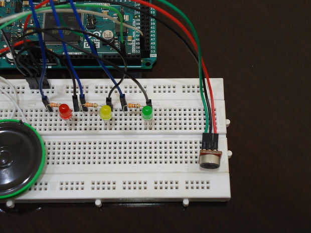El primer paso es conectar el Arduino y protoboard con los componentes como se muestra en las fotos anteriores. Tuve que poner una goma debajo del altavoz porque vibra mucho y sin el caucho de la calidad del audio es afectada considerablemente.