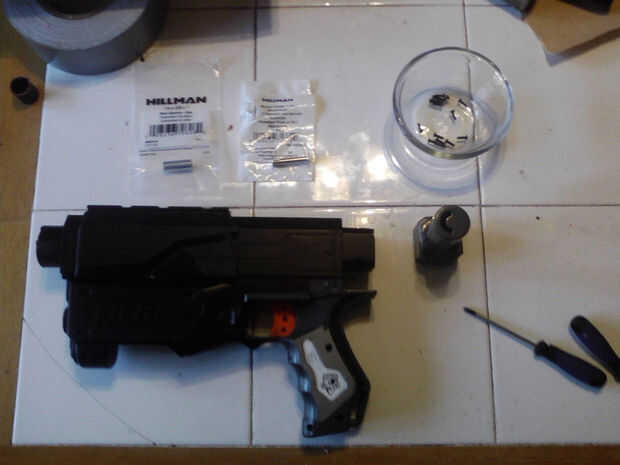 Eliminar los restantes 13 tornillos que sujetan el cuerpo de la pistola, tienes que parcialmente amartille la pistola para llegar a los tornillos de la parte delantera 2.