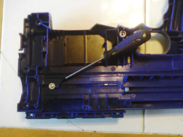 Usted encontrará que la mitad de la corredera para amartillar es celebrada con sólo un tornillo, retire el tornillo.