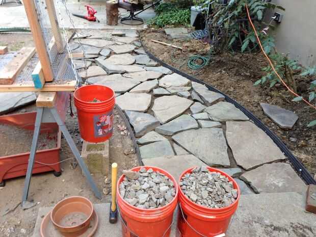 La ruta antigua y nueva se reunió con el patio de Lajas en el mismo lugar, tan cerca de 2 pies de ruta de acceso original se mantuvo. Otra vez, las diferencias fueron un poco más ancha de lo que me ha gustado, por lo que he encontrado algunas pequeñas cuñas que planeo para insertar en esa sección.