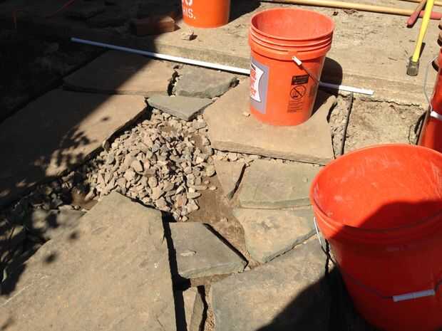 Ahora estaba listo para la colocación final. Los adoquines tenían diferentes profundidades, que van desde una pulgada hasta más de tres, con un espesor constante y otros con arcos y bombeos. Mi objetivo, a pesar de esto, era para las tapas de todos los adoquines a nivelarse uniformemente entre sí.