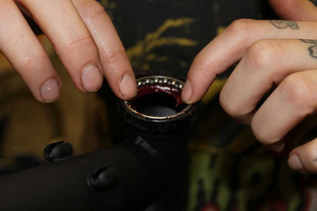 Los rodamientos enjaulados deben ser instalada una cierta manera para arriba. Debería ser bastante obvio que tienen que ir de la manera, cabrán agradable y ajustada en las carreras de tubo cuando se instala la forma correcta.