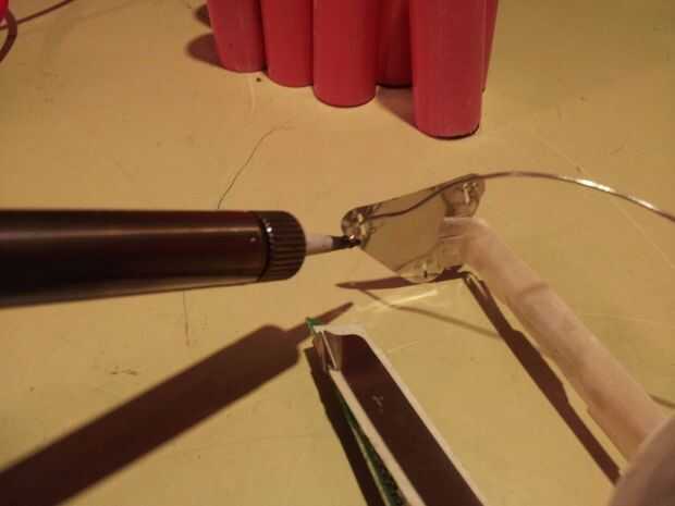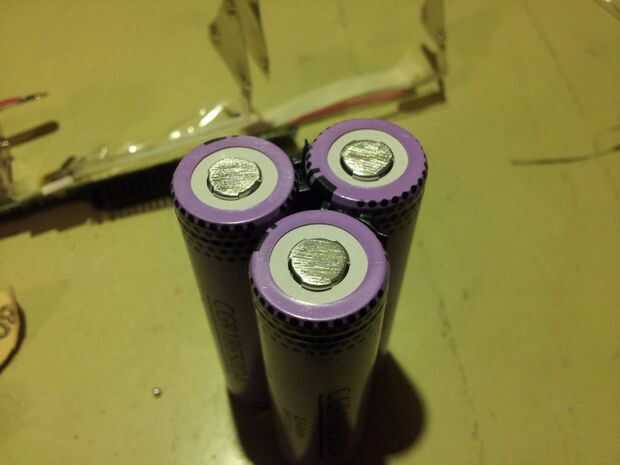 2. calienta el soldador. Empezar por estañado (aplicando una gota de soldadura) a todos los contactos de los terminales positivos según el esquema de batería que formuló.