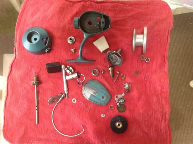 Como nota - muchos carretes de spinning son terriblemente complicados y y no muy durable, haciéndolas difíciles y caros de reparar. Sin contar los tornillos y arandelas, este carrete es probablemente bajo 50 piezas, lo que es un buen candidato para una reforma exitosa.