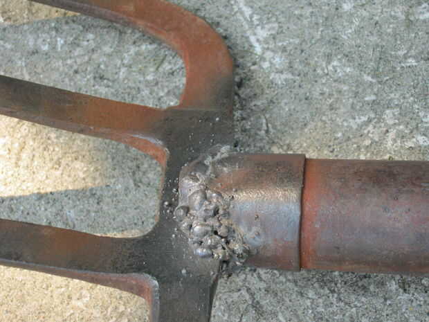 Sé, que sé que esas soldaduras ven horribles. Soldar con autógena la horquilla y la palanca de nuevo juntos. trate de hacer un mejor trabajo que hice. me chupo en este.