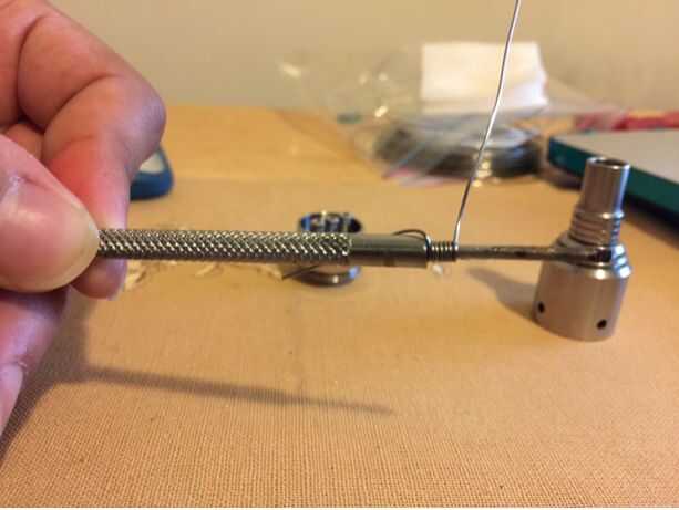 Envuelva firmemente el alambre de kanthal 6 - 8 veces alrededor de la parte lisa de la broca, dejando un 1/2 pulgada de alambre en cada extremo. Asegúrese de que cada uno es lo más cercano posible a la anterior.