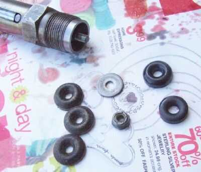 Revise el émbolo para polvo y partículas de madera. El émbolo del hilo de rosca en la base de la unidad de salida de la botella. Apriete con una llave y golpea la llave varias veces con un martillo para hacer un buen sello, puesto que no hay ninguna lavadora "O" ring o cobre para hacer el sello.