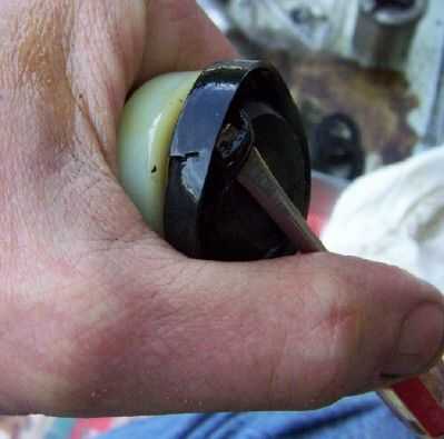 Segunda foto, el kit de piezas incluye tres sellos de ram. Dos de ellas parecen coincidir con el viejo sello en la primera foto. Uno de los sellos que parecen ser de un partido es 1/10 de pulgada demasiado grande de diámetro. Compruebe la abertura del cilindro con un calibrador y el sello que más se parezca a lo del uso. Los nuevos sellos de ram no son muy flexibles. Tuve que presionar en la ram mientras que estaba colocado sobre el agujero en el sello. Lo consiguió comenzado. Entonces pude luchar contra el sello en la ram el resto del camino.