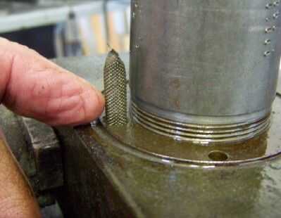 Segunda foto--limpiar el casco del tanque, tanto en los bordes que mate para hacer un sello y el interior. He encontrado un poco de suciedad en el interior mina. La suciedad no había entrado a la toma desde el exterior, pero parecía ser el residuo que había formado a partir de cambios en el aceite. Apliqué algunos aceite de gato en el interior del tanque y limpiar con una toalla de papel limpia. Hice esto varias veces hasta que ya no podía sentir nada arenoso con mis dedos.