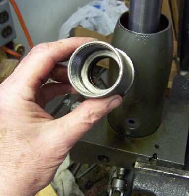 Tercera foto--limpiar la tuerca de la ram. Vuelva a colocar el anillo de sellado de neopreno dentro de la abertura más estrecha. Ver el cuadro de texto izquierda. Limpie la superficie de contacto donde la tuerca se sella con el casco del tanque. Ver el cuadro de texto correcto. Coloque la tuerca sobre la ram y comenzar a bajar en cuanto pueda a mano.