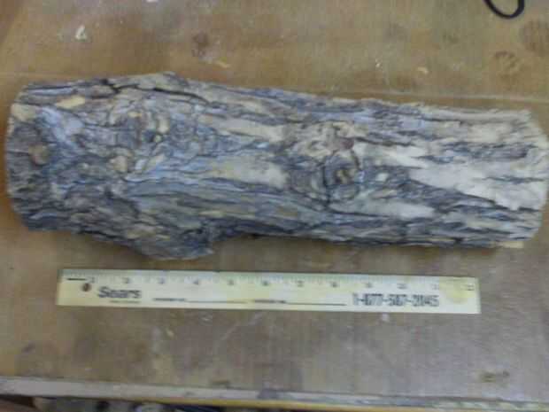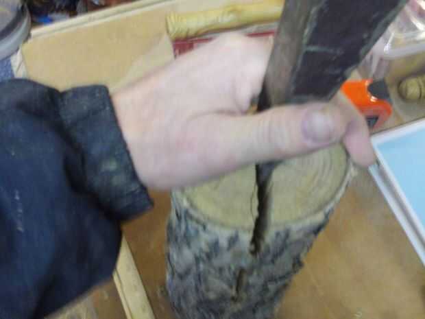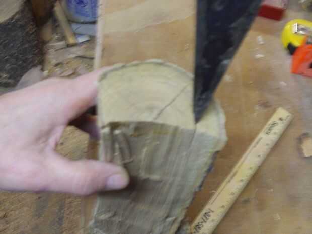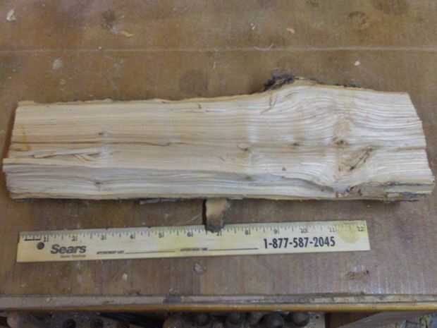 Empecé con un registro de ceniza unos 14" largo y 4" de diámetro. Luego partí el registro en dos. Luego había recortado parte de los bordes de cada lado del división registro.