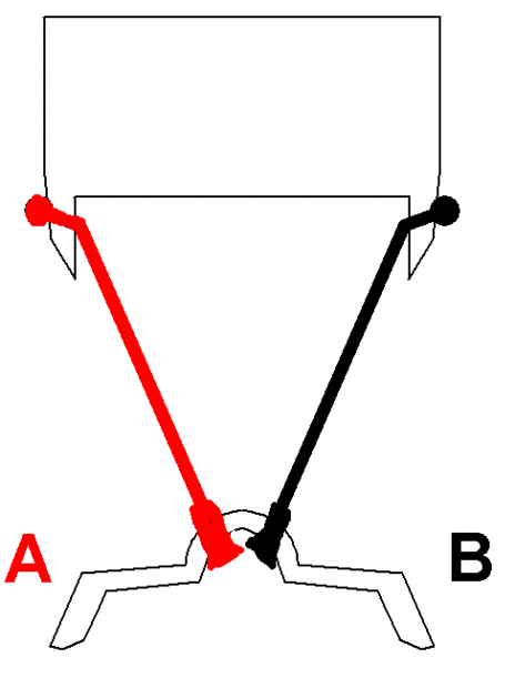 En el diagrama, si la llanta está demasiado a la izquierda A apriete el rayo negro va a la derecha del eje.