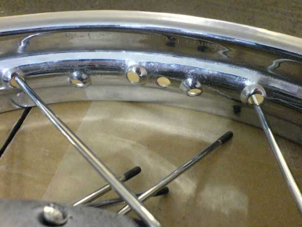 Empiezo en el área de orificio de la válvula y trabajar mi camino alrededor de la llanta hacia la derecha. El rayo 1 asiento/hoyuelo apunta a la parte de acoplamiento de capa y freno, así que no puedo usar que uno, que sale el 2 º hoyuelo, que felizmente a la capa estoy trabajando en. Al estallar en el rayo a ver que encaja perfectamente y obviamente en el agujero. Luego cuenta 4 hoyuelos y pop un rayo en el 4 º hasta que he hecho todos los 10 del hacia arriba apuntando radios.