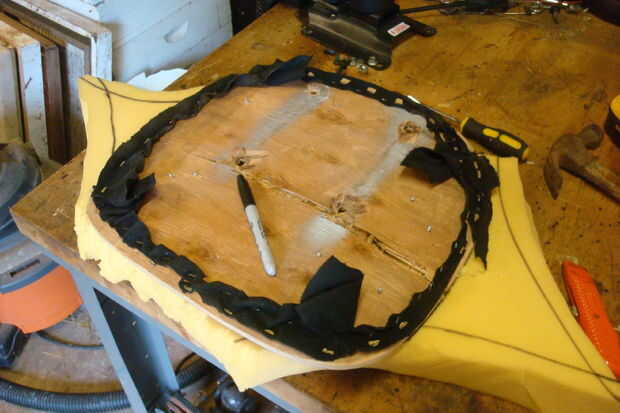 Tomar el viejo asiento, sentarse en su espuma y remontar hacia fuera. Para mí, absolutamente no podía ajustar, así que solo corte lo más cerca posible.