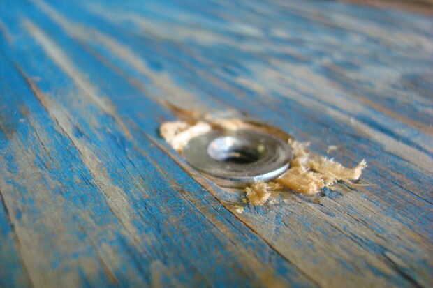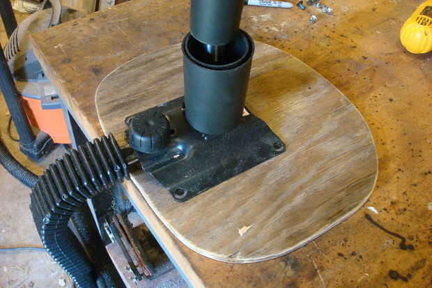 Establecen el marco de la silla en el asiento donde usted lo desee y cuando ha lugar a marcar los orificios con un rotulador, luego perfore los agujeros para las tuercas que encajan los tornillos. Asegúrese de que usted C'bore la parte superior de los orificios para que se sientan descarga allí. Para los míos utilicé un 3/8" broca para los orificios y un 5/8" para el C'bore.  Prueba ajustarla todos juntos para asegurarse de que no se peguen los tornillos de y todo funciona como debe.