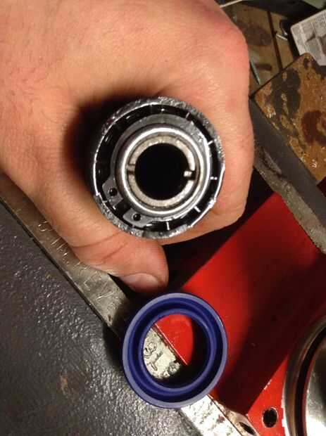 Para la nariz, inspeccione la superficie para y las rebabas o marcas. Utilice al scrapper para eliminarlos y limpiar la superficie. Reemplace todos los anillos O y asegúrese de que todo es engrasado antes de reensamblar. Para el sello del cilindro, este debe ser limpio e instalado en el orden que fue quitado. Este pequeño pedazo azul de goma levanta un coche. Tratarlo como su vida depende de ello. Cuando instale todo de nuevo juntos, hacen que el orificio de llenado esté en la parte superior de la unidad de potencia y accesible mientras instala.