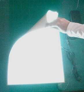 En algún momento de diseño de coches, alguien tuvo la idea brillante (retruécano previsto) con iluminación electroluminiscente. EL principio de uso totalmente diferente (y es cierto que extraño que suena para un coche) de luces. El coche estándar 12v de la C.C. actual es a través de un inversor para crear una fuente AC de voltaje más alto, entonces aplica a una capa impresa del fósforo. Esto lo hace brillar. Es el mismo principio que los glowy quitamiedos, verde y azul.