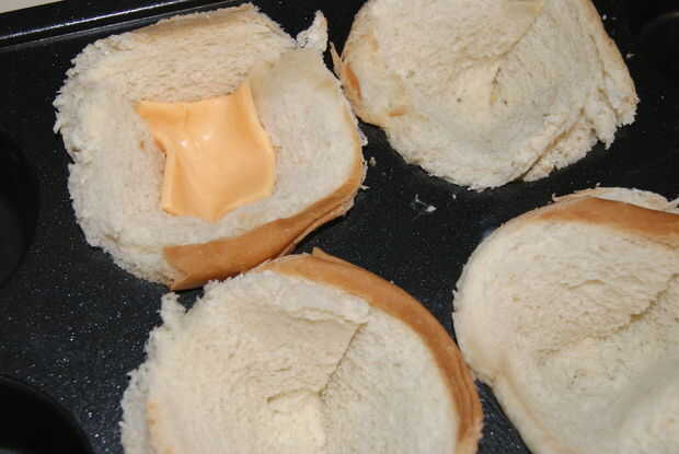 Pulse parte 1 cuarto de queso americano en la parte inferior de la taza de pan