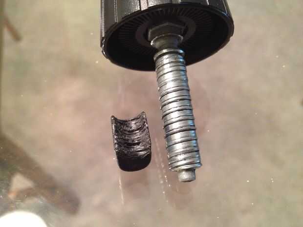 Ver la segunda foto. El mecanismo de tornillo en estas asambleas se lleva fácilmente. Lo mismo ocurre con el bloque de plástico que se mueve con el tornillo. La tarea es construir un viajero nuevo bloque y un tornillo nuevo y hacer que todo encaje en el caso original.