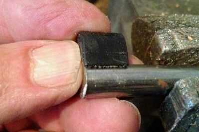 Decidí usar un pedazo corto de la varilla de 3/8 pulgada de acero en lugar del viejo bloque seguidor plástico. Moler a las rebabas después del corte. (Nota: cuando termine de pulir, la barra se ve como varilla de 5/16 de pulgada. Es posible que funcione, incluso mejor que usar varilla de 5/16 de pulgada y hacer menos moler para hacer la diapositiva de la pieza sin problemas en la caja de plástico.)