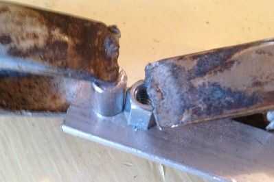 Sujeta el pedazo corto de la varilla de 3/8 de pulgada y el pedazo corto de la tuerca de acoplamiento a un pedazo de aluminio para la soldadura de los dos juntos.