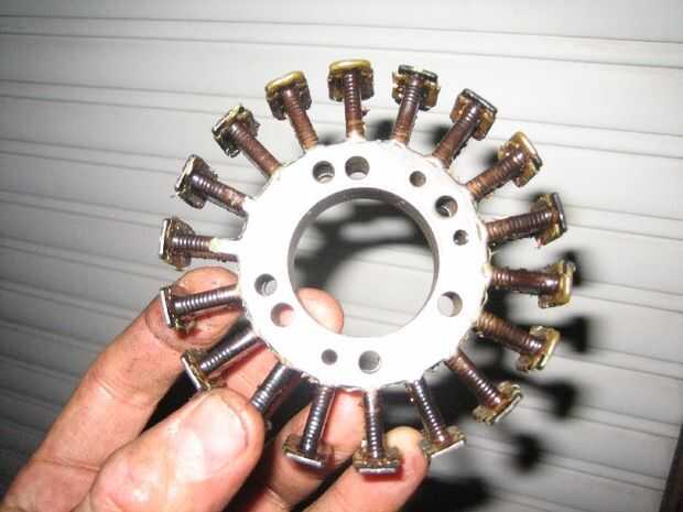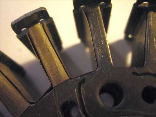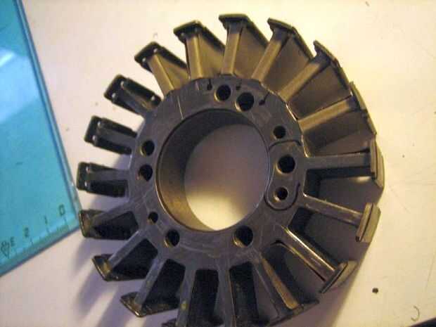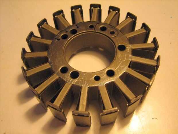 Antes de rebobinado del estator, asegúrese de preparar su superficie, suavizar con un archivo (o un minidrill) todos los filos. En mi caso este paso era absolutamente necesario, como por error quité los residuos de epoxi (como se puede ver en la primera foto abajo) con un gel de remoción de pintura. Tuve que preparar 36 piezas pequeñas de mylar cartulinas (mismo usado en devanados de transformadores) en derecho tamaño y cubren con ellos todos los polos.