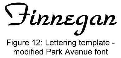 Deletreado: decidí que quería cortar el nombre de Finn en el proyecto. Opté por la fuente de Park Avenue y tamaño para que quepa bien en la parte inferior de la pieza. Tuve que modificar la letra "g" y la letra "a" para no tener caídas. Una vez que se hizo el retrato de sí mismo y separa las dos piezas cortadas la pila, he aplicado la plantilla de Letras con cemento de goma (Figura 12).