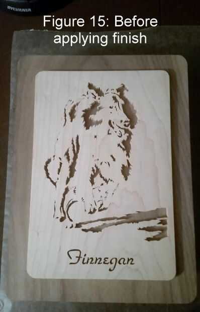 Tengo afinidad con el aspecto natural de la madera, normalmente no utilizo manchas y tal. Pero un simple como aceite danés aumentar el contraste y resaltar la veta natural de la madera, por lo es mi ir a la final para un proyecto como este. Simplemente aplique sobre una capa de aceite danés - asegurándose de que entrar en las zonas empotradas, así como puede, lo dejas remojar en, y luego pula ligeramente. La figura 15 muestra la pieza antes de aplicar el acabado y la figura 16 muestra la pieza con aceite danés aplicado.