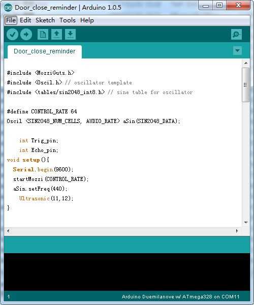 Todo, una estructura de módulo de hardware básico ha sido terminado. Es el momento de subir el programa a crowduino, puede encontrar el programa en los archivos adjuntos, descargar y descomprimir, luego abrir y cargar el programa con la herramienta IDE Ardunino. Ahora podemos tener una prueba de alimentación con un adaptador de alimentación DC 9V 1A. Utilice la mano para acercarse poco a poco el sensor de ultrasonidos, emitirá un tono cambiante de la voz. Incluso puede tratar de tocar melodías sencillas.