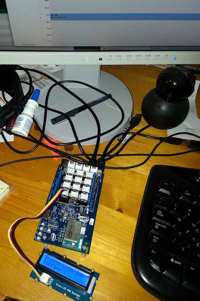 edison_google_calendar.ino es el sketch de arduino principal, responsable de mostrar el evento en la pantalla LCD RGB de Grove y zumbido del timbre cada vez que un nuevo evento surge. Si usted no tiene ninguna cita actual, se apaga completamente la pantalla RGB LCD para ahorrar energía:)