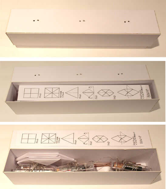 Para esto, utilicé Monte board (tarjeta de espesor de 3mm) y cortar estas 5 piezas para la tapa. Necesitará espacio uniformemente 3 agujeros pequeño 3mm en la parte superior de la caja.