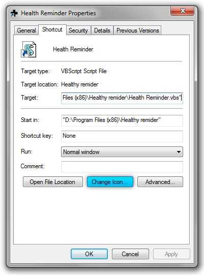 - En la nueva ventana abierta, haga clic en el botón "Cambiar icono...".