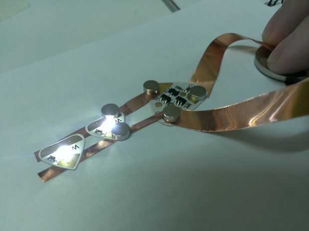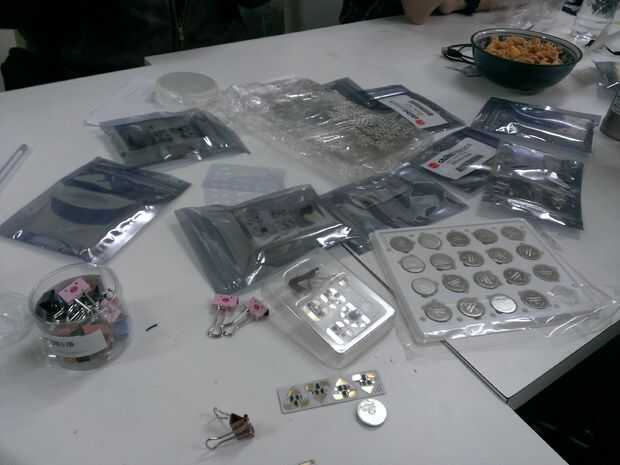 Para la noche de la construcción que hemos recibido un paquete grande de piezas de Chibitronics, pero de alguna manera cuando nos reunimos para hackear, no pudimos encontrar ninguna de la cinta de cobre que es esencial para los proyectos de trabajo (es decir. el cableado). Tenía que pensar rápido y mientras alguien escurr la tienda electrónica de algunos cobre de reemplazo, se nos ocurrió con algunas alternativas para trabajar con piezas de Chibitronics.