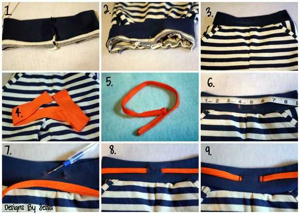 1. con derecho, coser la costura juntos. 2. con los lados del derecho juntos, pin y coser la pretina en el borde superior del pantalón. Utilicé las líneas de hilo serged en mi sudadera como guía, otra 1/2 '' las costuras. 3. usted debe tener esto. Y usted podría parar aquí si querías. Continúe añadiendo la corbata simulada. 4. agarra tu cinta de sarga. 5. hacerlo en cinta si es amplia como la mía. 6. Mida la marca a la mitad y marque 1/2 '' a ambos lados de la costura central. 7. costura corte dos pequeños agujeros donde se enroscará la corbata. Sé que esto es de miedo, pero está realmente bien. 8. Pase el lazo por los agujeros. 9. coser dos paralelo líneas sobre el lazo para asegurar, creando como un ojal simulado. Esta tela es jersey verdadera, para que no debilite más y no ser visto con el lazo atado como para...