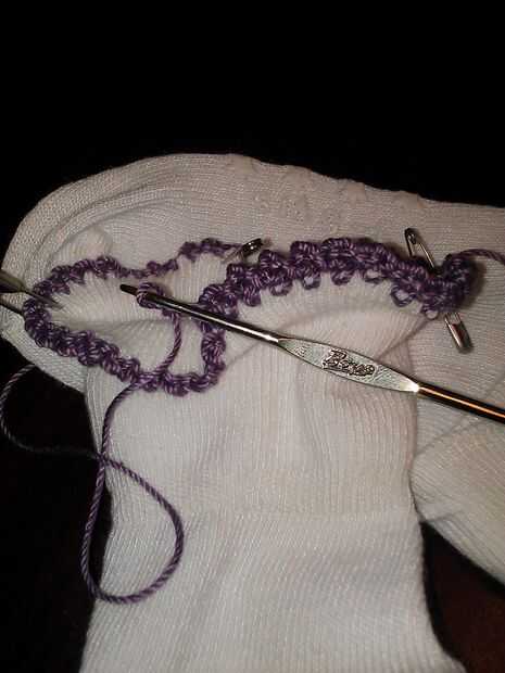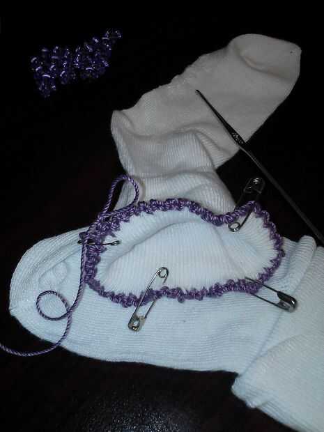 Cuando se realiza la 1 º fila, girar y gancho bucle en 1ª fila, cadena. SC 2. repetir en el borde superior del calcetín. cadena. SC 2 y vuelta.