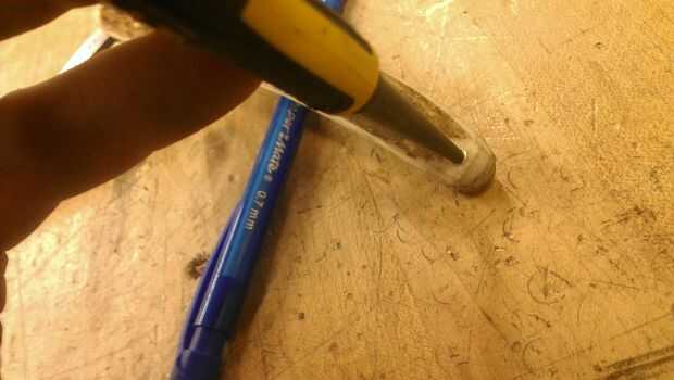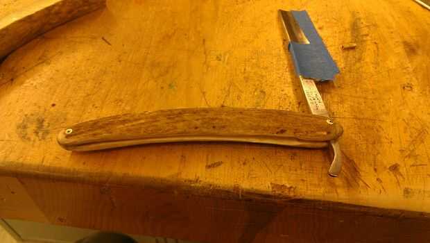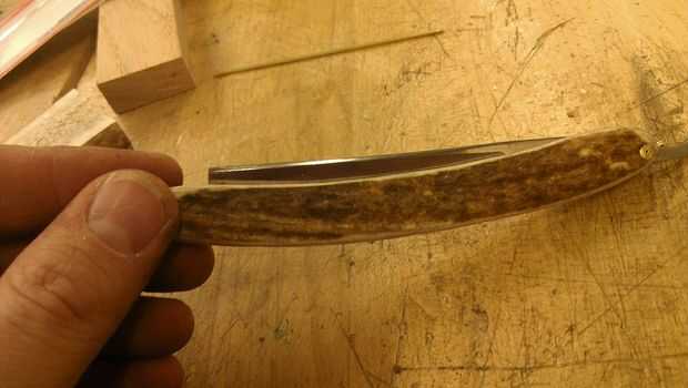 Con el talón lateral hecho es hora de colocar la hoja en el pivote. Aquí usted debe ser consciente de la ruta de acceso completa de la hoja como usted lentamente de la Peña las dos mitades juntas. Asegúrese de que el granallado se realiza de una manera que resiste el movimiento libre de la hoja, pero que aún permite que se abren y se cierran.