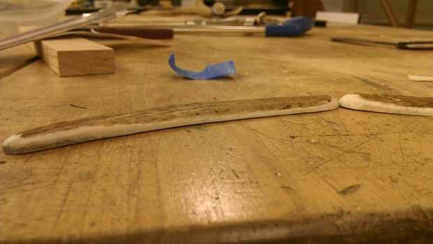 Una vez que las dos mitades son planas, yo se con cinta adhesiva para que puedo suavizar todos los bordes ásperos, y luego afilan los puntos en los extremos. En el mundo de la construcción de la maquinilla de afeitar, más delgado haces las escalas, más impresionado sus admiradores. Asta es una sustancia natural muy fuerte, por lo que no tenga miedo de empujar los límites.