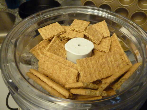 Lanzar tus galletas en un procesador de alimentos y los de pulso hasta que se la consistencia de arena granulada.