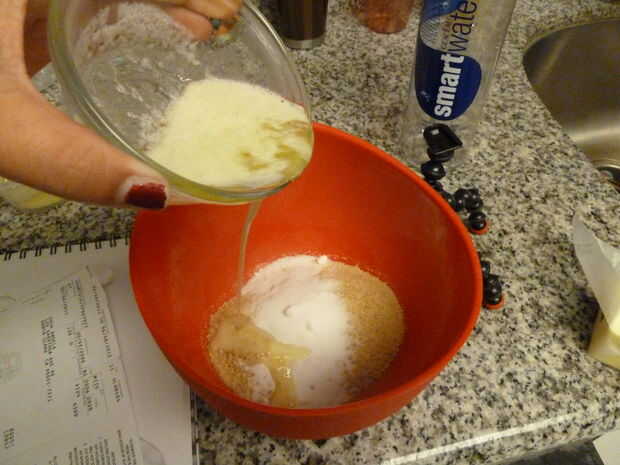 Mezclar mantequilla, azúcar y galletas en un recipiente bien y uniformemente.