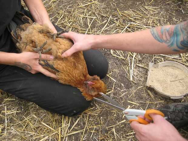Nos recortar las plumas sólo las alas de derecha de pollos. De esta forma son todos iguales, y cuando tenemos que cortar las alas otra vez en pocos meses, podemos ser coherentes con lo que ala nos gustaría hacer.