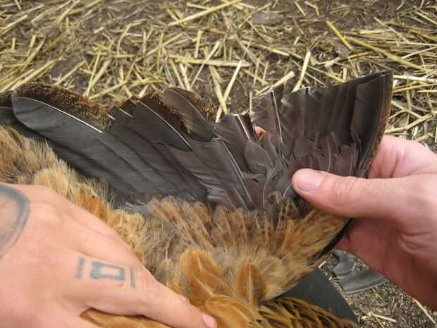 La idea es cortar una cantidad significativa de las plumas, mientras no haciendo un corte así que cerca de los pollos ala que hace sangrar. Plumas de pollo tienen vetas de sangre que se extiende hacia ellos acerca de una pulgada o tan. Si se corta por debajo de este punto, la pluma está completamente muerta, el pollo siente nada, y las alas Haz recortadas con éxito.