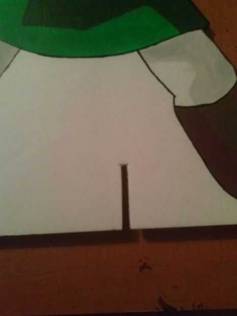 Deslice el quid de la pieza triangular en el corte en la parte inferior de la pieza pintada para ver cómo estará tu figura. Puede que desee dar a la parte inferior de la pieza triangular un ligero ángulo para que tu figura se inclina ligeramente hacia atrás.