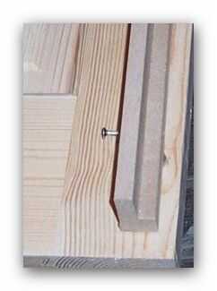 Las dos longitudes que pegados y atornillados juntos formar un carril en forma de "L" o el corredor una vez que el pegamento fue set perforé una serie de orificios a través de ambos tramos - se utilizan para fijar el riel de la puerta utilizando tornillos pequeños