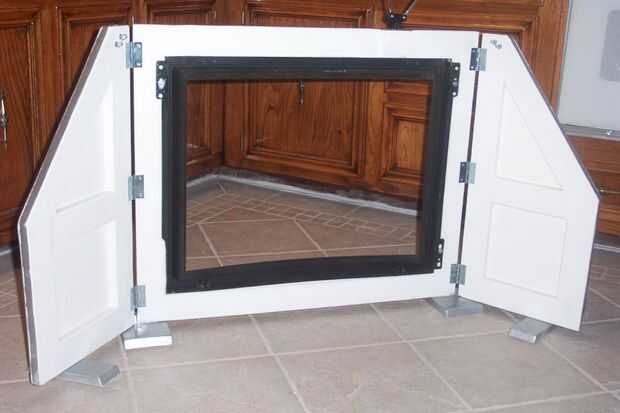 Crear los dos lados. Los lados deben doblar en para que la unidad portátil. Hice un marco de madera para simular el perfil de un televisor. Estaba cubierto con un trozo de madera prensada. Fina madera contrachapada haría o si tiene un pedazo de revestimiento sobrante para utilizar. Recortar los bordes y coloque los pies para que coincida con la altura del panel frontal. Los lados se unen a la parte frontal con bisagras de alta resistencia.