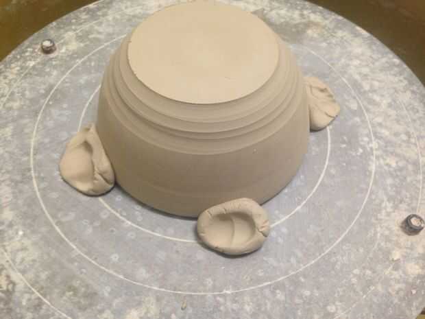 • Espirales de arcilla deben ser removidos y una forma de tazón de fuente general empezará a formar en el exterior. Parada al llegar al círculo.