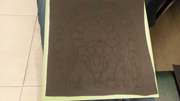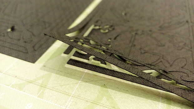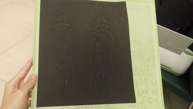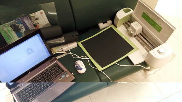 Gire el Material en la máquina, determina la profundidad irá el cuchillo, usé cartulina para mi papel negro grueso.