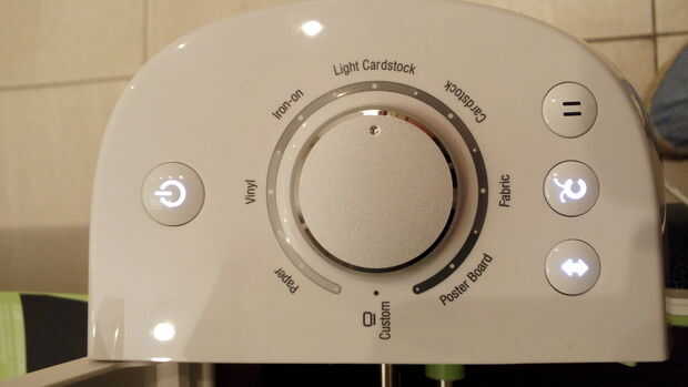 Observar si el papel es de corte completamente a través de, o si corta demasiado profundamente. Demasiado poco no se corte, demasiado profundo heriste la almohadilla de corte. Se puede pausar el corte con el botón de pausa de la máquina. Descarga la malla, ajuste el selector de material necesario, cargado el tapete otra vez y pulse ir. La calibración es super exacta! Estoy tan impresionado! Debe cortar a lo largo de la misma línea bien!
